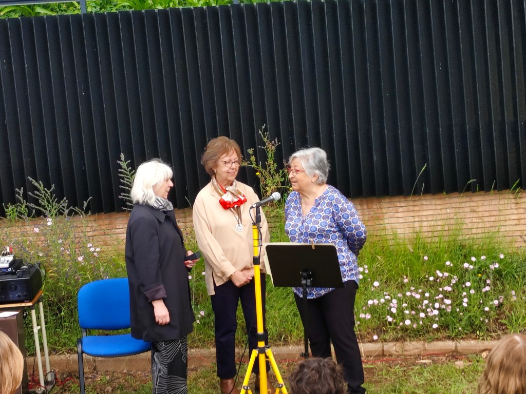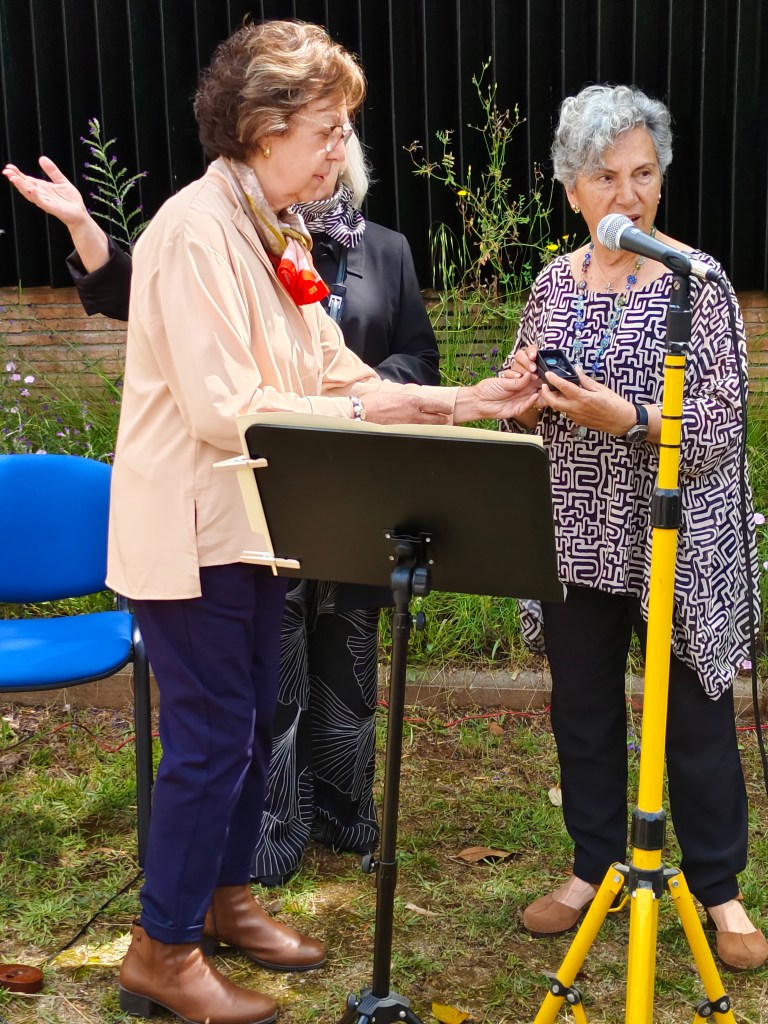 Regidora de Salut Pública Anna Piñol. Despres del parlament es va fer entrga d’un obsequi a les anteriors presidente de DAMA. Les senyores Pepita Quer i l Lola Puig, quedant pendent entregarés a Montserrat relats i montse Santamaria que van excusar la seva assistència. Per acabra l’acte la poeta Montse Pineda i el violencilista Ignasi Prunés en van oferir 4 poesies musicades i una d’elles dedicaca a DAMA. Es va oferir un refrigeri i finalment un brindis en cava,