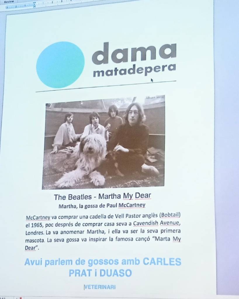 La conferència va tractar sobre els gossos a Catalunya, les noves lleis i la Leishmaniosi. (una malaltia que transmet un mosquit paràsit. En Carles es va llicenciar en medicina veterinària el 2008, va continuar la seva formació a Anglaterra amb estades a Londres a la Universitat de Cambridge. És membre del Col·legi oficial, de Veterinaris de Barcelona i membre del col·legi de veterinaris de Londres.